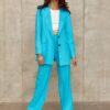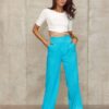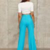 Beautiful pants with a wide cut and high rise are the perfect choice for everyday and occasional outfits. Slip pockets on the sides, fastened with a covered zipper. On the front there are darts. They will go perfectly with a jacket of the same color.