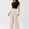 Alaya pants are a perfectly tailored model that beautifully emphasizes women’s charms. The pants are extremely comfortable to wear and look great on any type of figure. They have loose and wide leg type, which is fashionable and very practical. The built-in wide waistband and high waist condition perfectly emphasize the waist, optically slimming the figure. The pants have pockets on the sides and a discreet built-in zipper, which makes it easy to put on and ensures a perfect fit. Alaya pants are perfect for a variety of circumstances and styling. Paired with a classic shirt and elegant shoes, they will create the perfect look for office outings, business meetings, or formal family celebrations. Matching them with a loose top and a shorter sweater, you will build a styling perfect for everyday life.