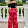 Capri pants are a high waist high waist model with wide leg flared legs. The pants have an elastic waistband and open pockets on the sides. They are made of pleasant and airy patterned fabric, which will also be perfect for hot days. The cut of the Capri pants will look great on all figures. Above all, the pants will guarantee you comfort and a fashionable, feminine look. Capri pants will look great with a tight top and sneakers or with a shirt tied at the waist and a straw hat. You can easily create with them a holiday styling, which you can use for formal events such as communion, baptism, corporate events, but also for everyday outings to work, shopping and meetings with friends or family. The product is made and sewn in Poland.
