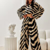 Wide leg pants are a perfect choice for summer, combining trendy design with unrivaled comfort. Their loose fit makes them incredibly comfortable and breathable, while the wide legs flow freely with every step, giving the outfit lightness and feminine charm. The eye-catching animal print gives them a bold character, making them an excellent base for creating both casual and more elegant outfits. Made from a blend of viscose and linen, these pants provide all-day comfort, and their natural properties make them an ideal choice for warm days. An additional advantage is the comfortable elastic waistband, which subtly adjusts to the silhouette, providing comfort without pressure. These pants are a combination of style, functionality, and lightness, perfect for summer walks and holiday trips. Thanks to their versatility, they will suit different styles, from casual to more elegant, adding a fresh and fashionable touch to each of them. The product is designed and sewn in Poland.
