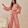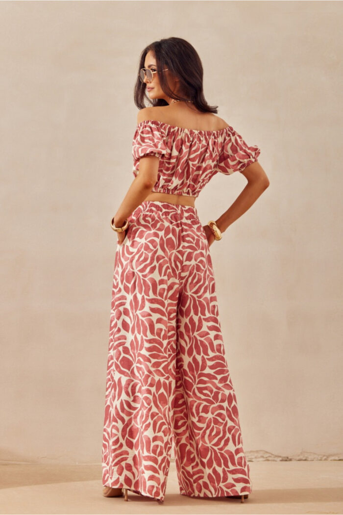 Wide leg pants are a perfect choice for summer, combining trendy design with unparalleled comfort. Their loose fit makes them incredibly comfortable and breathable, and the wide legs freely flow with each step, giving the outfit lightness and feminine charm. The eye-catching animal print gives them a bold character, making them a perfect base for creating both casual and more elegant outfits. Made from a blend of viscose and linen, these pants provide comfort for all-day wear, and their natural properties make them an ideal choice for warm days. An additional advantage is the comfortable elastic waistband, which subtly adjusts to the silhouette, providing comfort without pressure. These pants are a combination of style, functionality, and lightness, perfect for summer walks and vacation trips. Thanks to their versatility, they will suit different styles, from casual to more elegant, adding a fresh and fashionable accent to each of them. The product is designed and sewn in Poland.