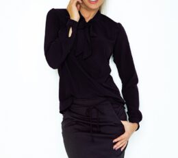Long sleeve blouse in the color of black. Decorative tie at the front. Perfect for many occasions.
