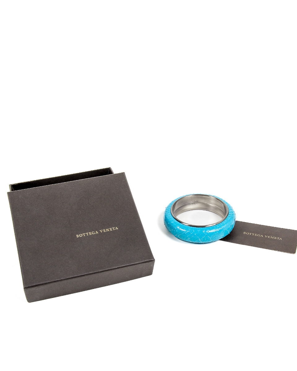 By: Bottega Veneta – Detail: 130220 V0FH3 4802 – Colour: Light Blue – Composition: 50% SILVER + 50% SNAKE LEATHER – Measures: – Made: ITALY