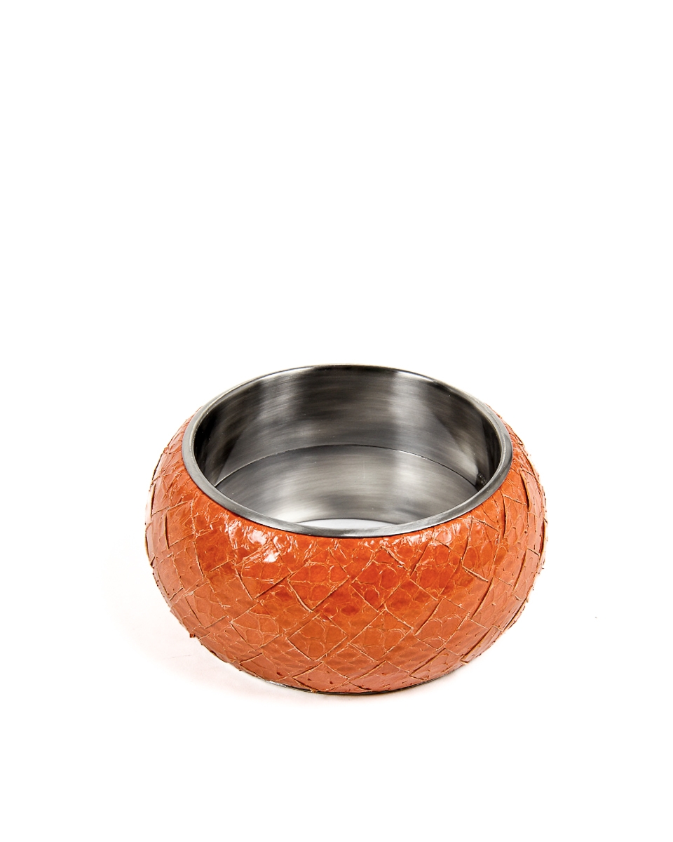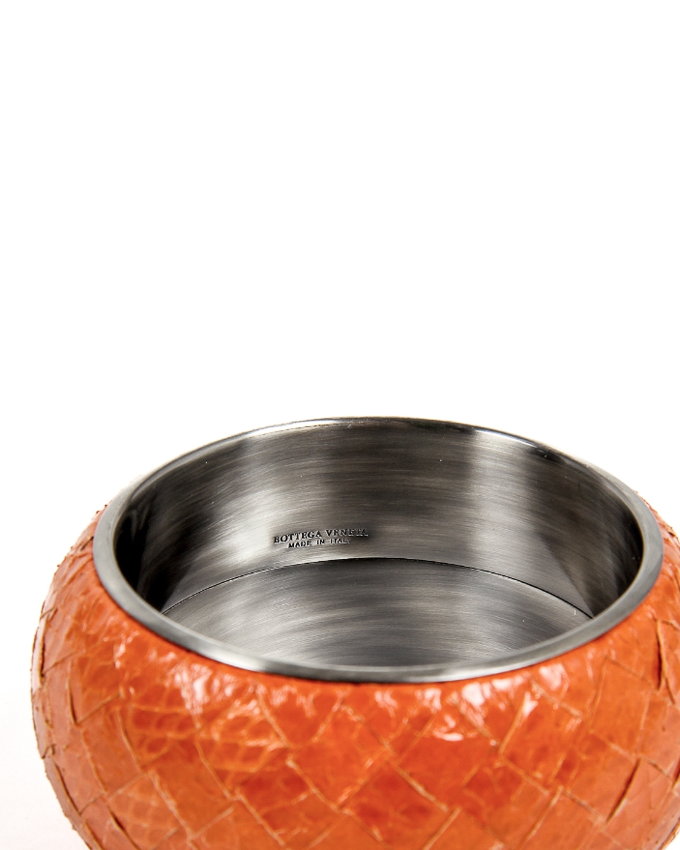 By: Bottega Veneta – Detail: 130221 V0FH3 7611 – Colour: Orange – Composition: 50% SILVER + 50% SNAKE LEATHER – Measures: – Made: ITALY