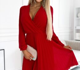 Isabella pleated elegant chiffon dress with long sleeves and envelope neckline. The dress comes in red color. Brand Attitude is a Choice. Polish production.