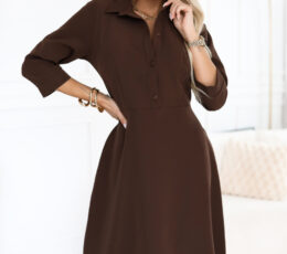 The elegant midi blazer from Attitude is a Choice in a deep chocolate shade is the perfect choice for work and everyday wear. The classic collar and button closure slim the silhouette, while the slightly flared bottom moves beautifully. The tie at the back allows you to adjust the waist, 3/4 sleeves and pockets guarantee comfort. Polish product.