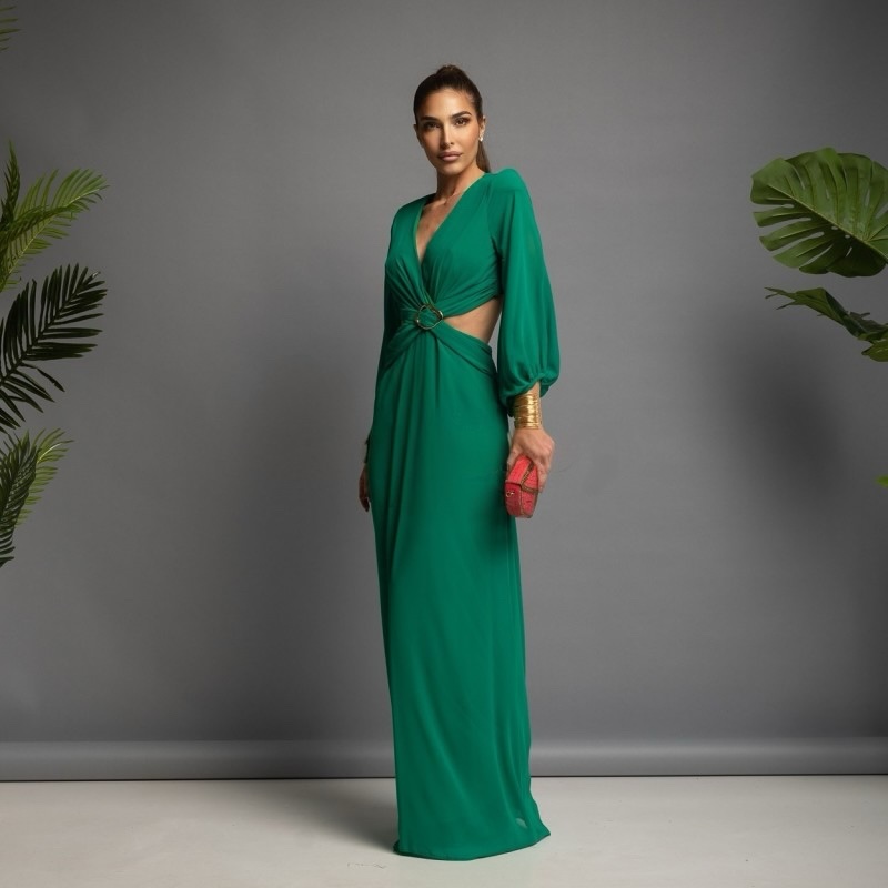 Elegant Emerald Green Cut-Out Maxi Dress with Open Back