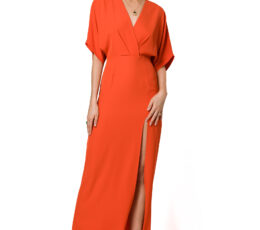 Evening dress in orange — curated by Attitude is a Choice. Worldwide shipping.