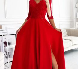 Long, elegant, lace maxi dress with neckline. Beautifully contoured neckline and slit on the skirt creates an unusual creation in red. The dress is ideal for weddings, New Year’s Eve, carnivals, proms and other major events. Polish production. Attitude is a Choice brand.