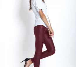 Timeless leggings made of fabric imitating eco-leather. Leggings finished with decorative zipper which gives them elegant character.