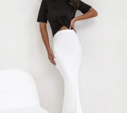 Viscose, lightly satin, with a subtle sheen that catches the light like an Instagram filter. Cut on the bias, wow effect without effort, beautifully drapes on the silhouette and really emphasizes the butt! And the elastic waistband? Comfort all day long, you wear it all day and can’t get enough. Skirt designed and made in Poland. Stretch fabric stretches about 7 cm, waistband +5 cm, freedom and fit.