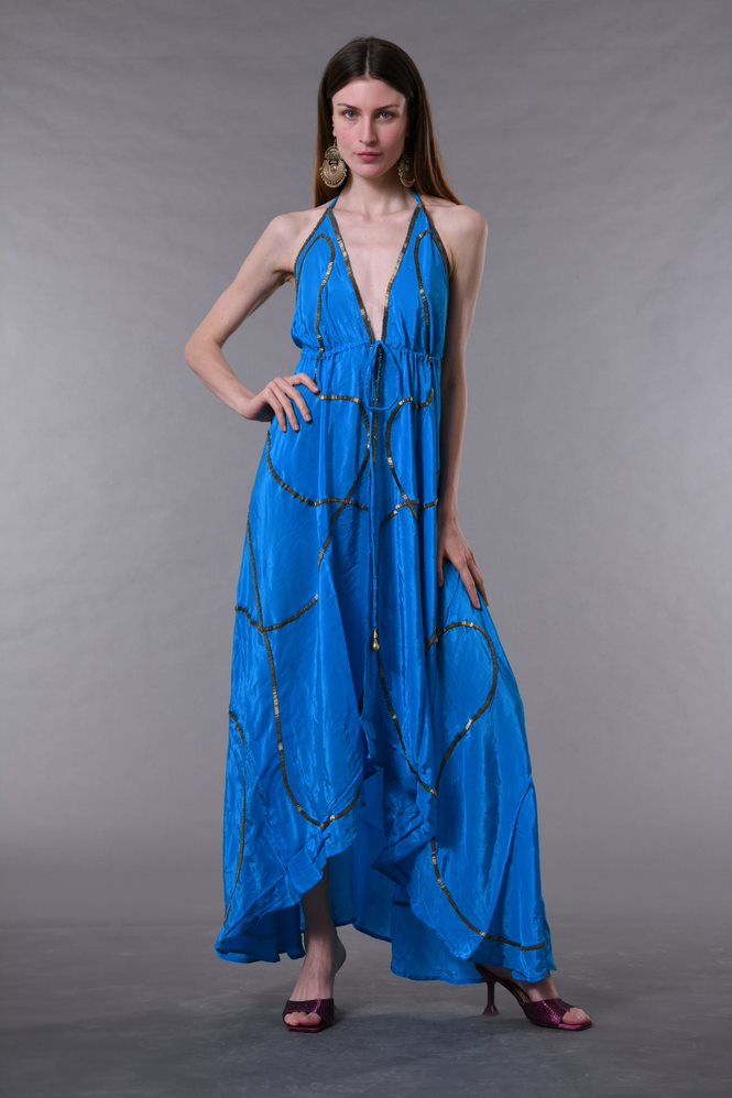 Ideal for island getaways, beach clubs, dinners by the sea and special occasions, with a timeless silhouette