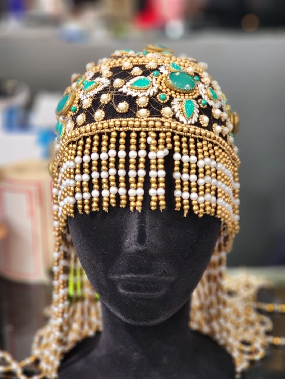 An exclusive handcrafted headpiece designed to express refined luxury and timeless elegance. Carefully hand-beaded by skilled artisans, this couture accessory features intricate crystal and pearl embellishments that create a sophisticated and distinctive statement.
