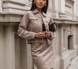 Corduroy set: a short jacket with a collar and pockets perfectly matches a fitted mini skirt. This is a versatile set that you can wear both casually with sneakers and for an evening out with boots or booties. Soft, stretchy, cotton corduroy, pleasant to the touch, natural cotton. Unlined but warm enough for cooler days. Ideal for layered stylizations, wear with a turtleneck, top, or T-shirt.