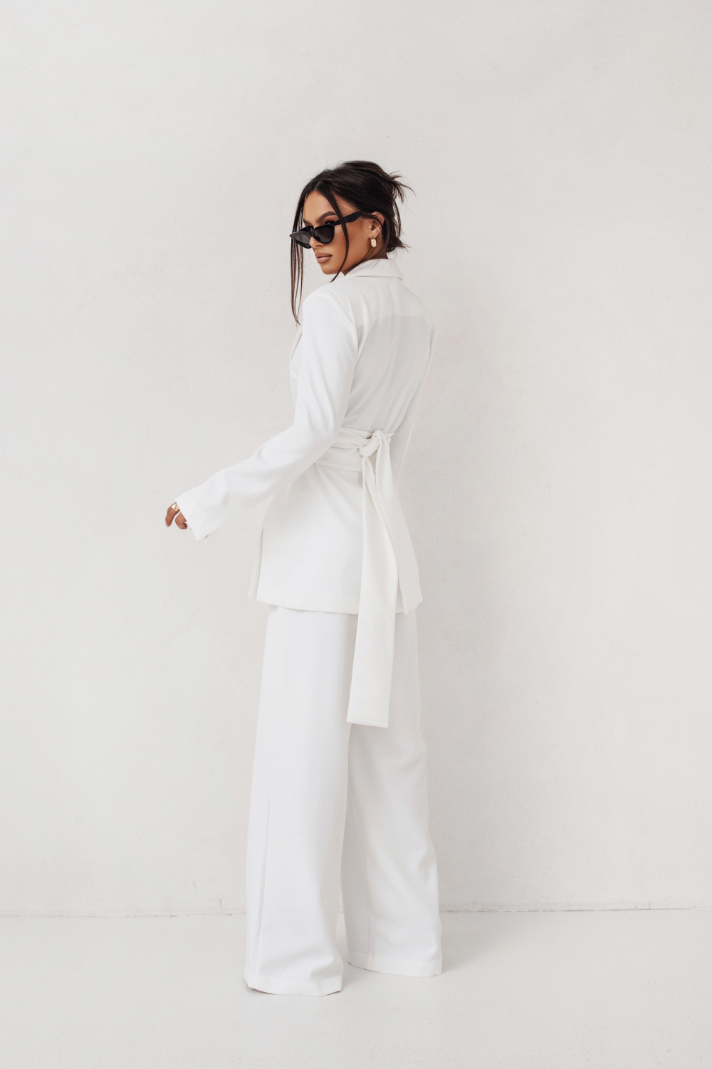 The ecru suit is the perfect choice for women looking for elegance and comfort. Made of high-quality materials, the suit combines modern style with a classic cut, making it an excellent solution for various occasions, both for the office and formal events. Its timeless color makes it easy to pair with other clothing items. The suit jacket features a well-thought-out cut that accentuates the feminine silhouette. The trousers, which are part of this suit, have also been designed with comfort and attractive appearance in mind. The material composition of the suit is 95% viscose and 5% elastane, ensuring durability, elasticity, and comfort when wearing. By choosing this model, you are opting for quality and style that will accentuate your personality and allow you to stand out in any situation. Choose the suit and enjoy a perfect look!