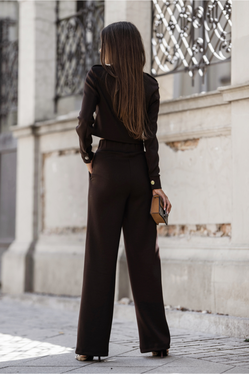 The CARMEN Brąz set is a unique clothing set that combines elegance and comfort. Made of high-quality material, consisting of 95% viscose and 5% elastane, it provides optimal comfort for wearing throughout the day. The set is designed for modern women who value both style and functionality in every situation. The blouse included in the set is characterized by a perfectly tailored cut and meticulous finishing. It offers various sizes, so every woman will find something for herself. The trousers included in the set are also carefully designed to emphasize the silhouette and provide comfort when worn. By choosing the CARMEN Brąz set, you are investing in a classic yet fashionable outfit that will work perfectly for both everyday wear and special occasions. Its elegant color scheme and universal design make it easy to combine with other wardrobe items, giving you countless styling possibilities.