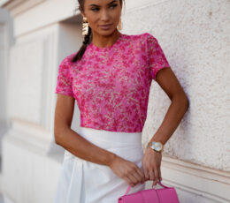 Tulle blouse with short sleeves is a unique piece of clothing that combines lightness and elegance. Made of delicate, semi-transparent material, it subtly emphasizes the silhouette, giving the styling a feminine charm. The round neckline adds a classic character, and the colorful print attracts the eye and gives the blouse a unique expression. Ideal for both everyday wear and special occasions, it pairs well with jeans, a skirt, or elegant trousers.