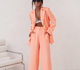 An orange suit is an elegant and modern wardrobe element, perfect for various occasions. Thanks to carefully designed construction and the use of high-quality materials, this suit perfectly fits the silhouette, emphasizing its advantages. Viscose combined with elastane ensures comfort, freedom of movement, and comfort throughout the day. The jacket has an attractive cut that gives it an elegant character. The pants, which are the perfect complement to the suit, stand out with a comfortable cut. The suit is an excellent choice for people who value both style and comfort. Its unique color and elegant form make it perfect for both formal and less formal events. Choose class and comfort, choose the EMMA suit in orange.