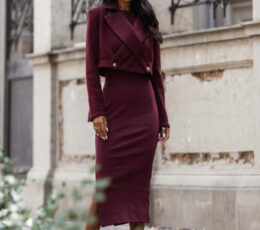 We present a set, an ideal choice for women who value elegance and comfort. Our proposal is an elegant blazer and a stylish dress that perfectly complement each other, creating a unique outfit for any occasion. Create a unique look that will emphasize your personality and confidence. The burgundy blazer is the quintessence of classic style. We offer it in three different sizes (S, M, L), allowing for a perfect fit to the silhouette. This blazer will surely become the basis for many outfits. The dress completes the set, offering not only aesthetics but also comfort. The set is made of high-quality materials, 95% cotton and 5% elastane, making it comfortable and breathable. This set is a perfect choice for various occasions, both for everyday wear and special outings.