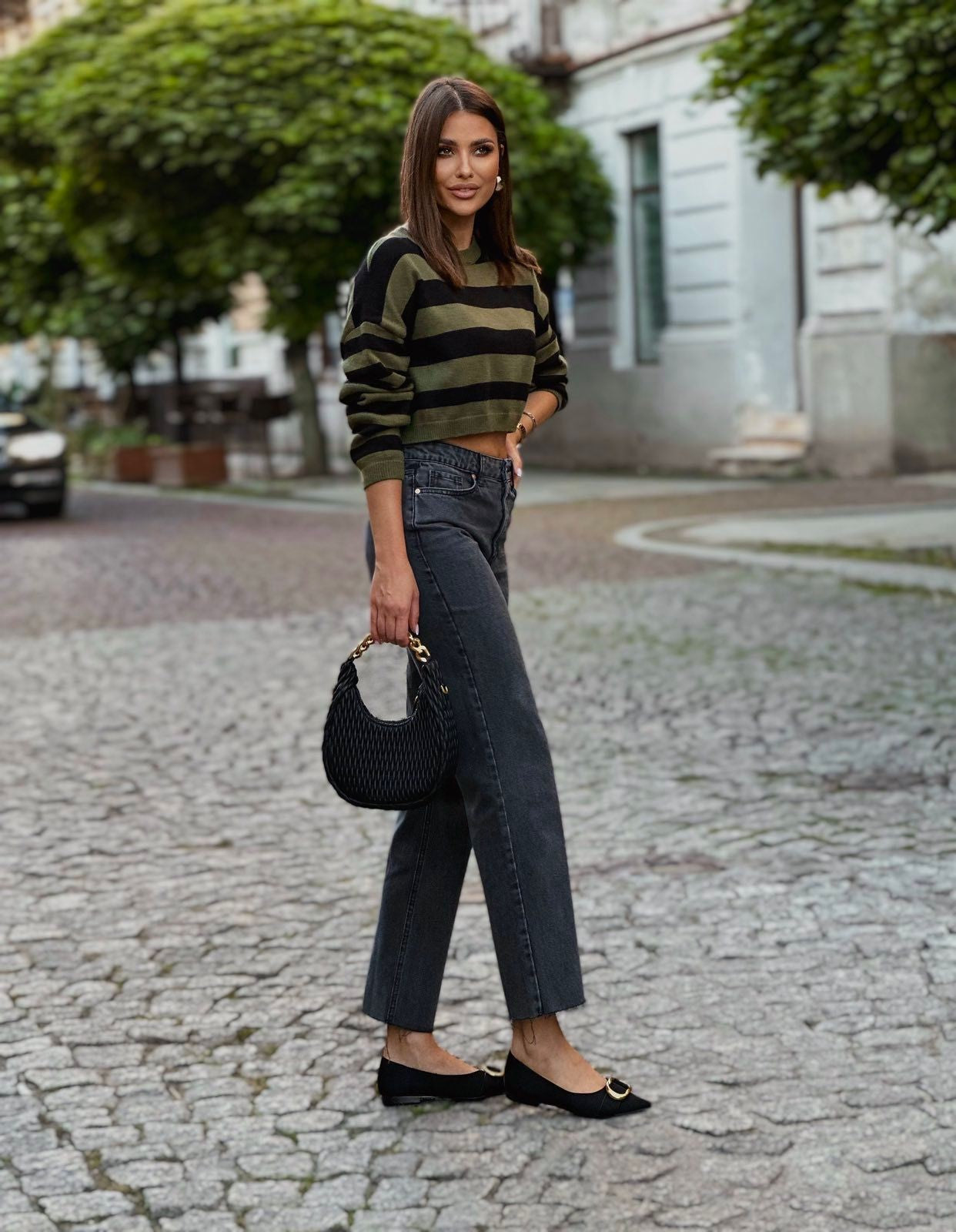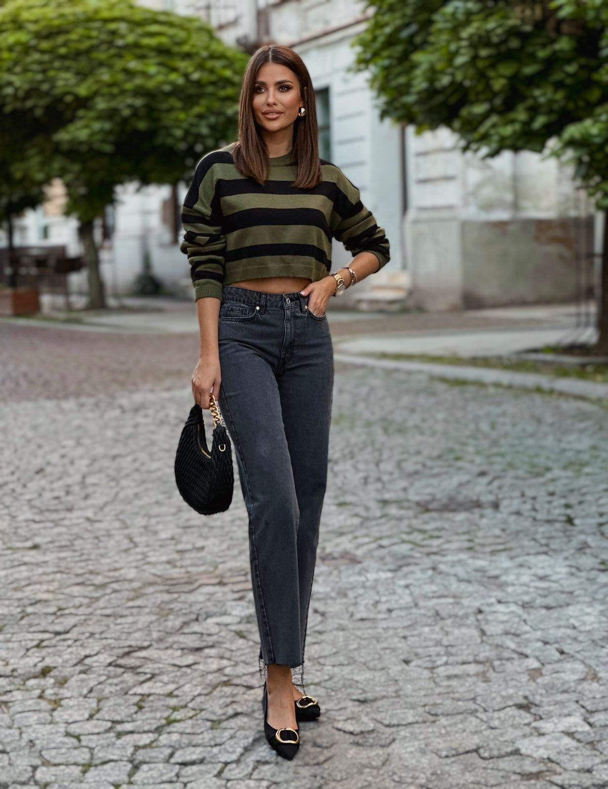 A striped sweater in khaki is a great choice for those who value fashion and comfort. This stylish sweater features a classic cut that makes it perfect for both everyday wear and more formal occasions. Thanks to its careful workmanship, the material is pleasant to the touch, ensuring comfort all day long. Khaki stripes add lightness and originality, distinguishing this model from others.