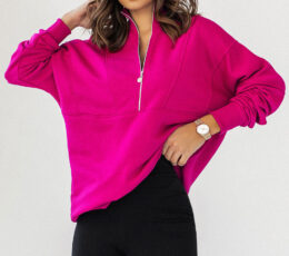 Another perfectly tailored oversize sweatshirt in our store. This time with a striking collar and decorative zipper. With the adjustable zipper you can adjust the size of the neckline, just the way you like it best! The sweatshirt also has decorative stitching, a lowered shoulder line, and the sleeves and hem finished with a ribbed hem. It will go perfectly with our leggings or other slim pants. Sweatshirt designed and sewn in Poland. Sleeve length measured from the neck.